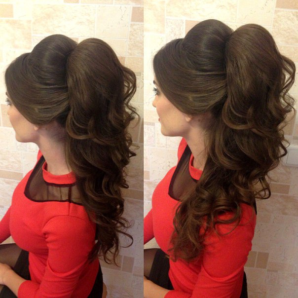 Если иметь такие шикарные волосы, то любой мастер справится: завить на плойку и собрать в хвост на затылке!