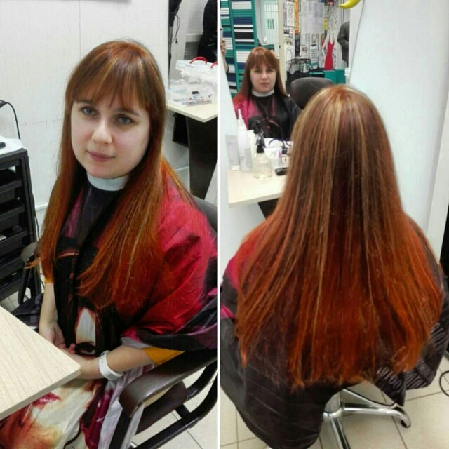 Челка вам не идет. Цвет ближе к вашему натуральному, но хочется чуть более насыщенный.