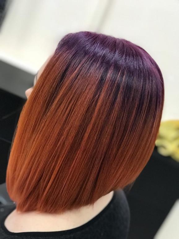 Люблю рыжий, мне кажется он идёт 90%. Но вот ваш фиолетовый на макушке чет не пойму.. без обид :)) по мне он с рыжим никак..
