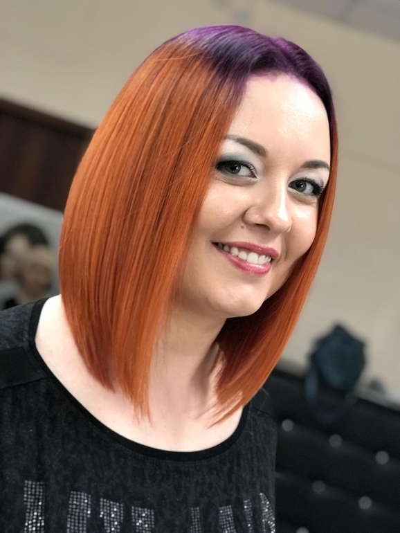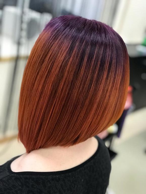 сзади и с боку хорошо, спереди как-то странно смотрится. Извините, но судя по фото ДО, вы не частый гость в салоне, а ПОСЛЕ к этому обязывает ибо седина+фиолетовый+рыжий аццкая смесь, имхо лучше выйти в один цвет и поддерживать его