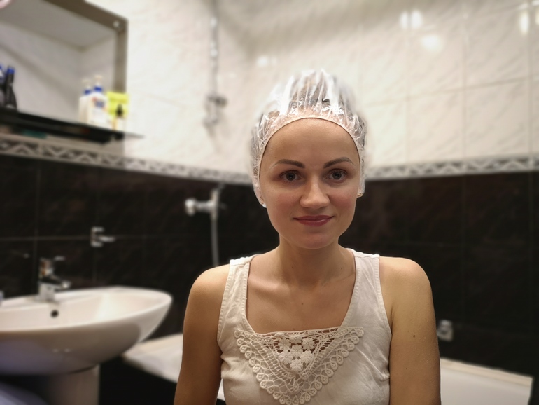 4) Для создания парникового эффекта оденьте на голову с нанесенным маслом на час полиэтиленовую шапочку.