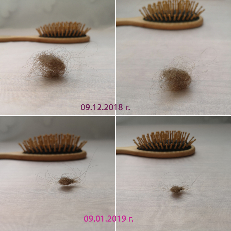 2) Неистовый волосопад остановился. Я могу констатировать снижение выпадения волос. На верхних фото пучок волос после 3-го применения масла (помыла голову, нанесла масло, собрала выпавшие волосы). На нижних фото пучок волос после 7-го применения.