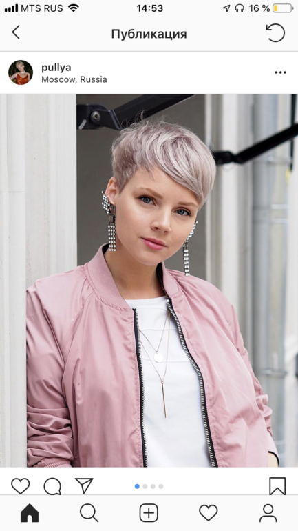 Ну я не имела в виду отращиваться прям хвост, ну так, до уровня плеч:подбородка. Может посмотреть другие ароматны коротких причёсок и все таки чуть затемнить волос. Правильно писали контраста не хватает: вы сами светлая, светлые волосы, отсутсвие макияжа и получается одет белое пятно