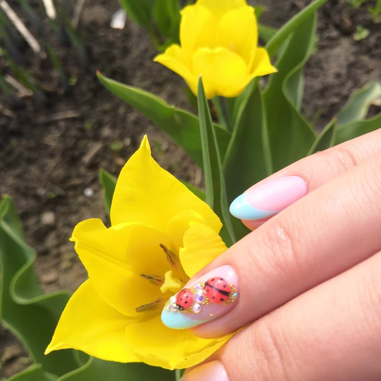 Про ногти не скажу, ибо такая красота не по мне. Просто вопрос, без стеба: Вам удобно в быту с такими украшениями? Божьи коровки не мешают?