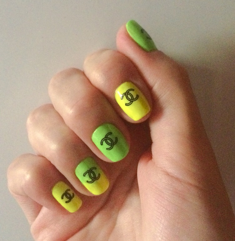 Яркие цвета разные бывают. Конкретно этот вариант, на мой взгляд, перебор, а уж логотипы шанель - вообще жуть. Я лично из ярких считаю допустимыми такие примерно варианты (я только про цвет, не про длину, форму и т д):