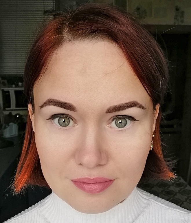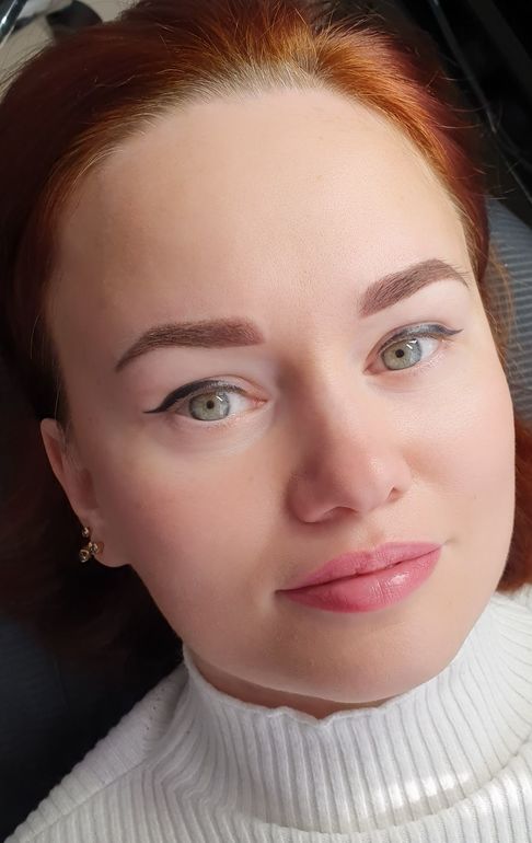 У меня были стрелки, которые я решилась удалить через 2 года, они были не оч. Но они до конца не сошли, и я решила сделать другую форму. А на фото просто неудачный ракурс, так как фотографировали брови, а не стрелки. Губы сделаны год назад.