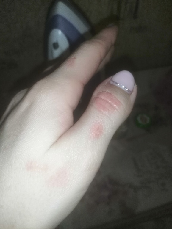 У меня были пятна именно на тыльной стороне ладони между указательным и большим пальцем, сначала пупырышки, потом чесались, потом просто красное пятно. По поиску в интернете и гугл фото определила, что это экзема. И может быть от чего угодно, в том числе и от мороза (как раз до этого пару раз сильно замерзли руки, была без рукавиц). Что я делала. Я сначала вычитала, что нужны сильные гормональные противоаллергические мази и купила Синафлан. Результата не увидела, зато была несколько дней пигментация на том месте (потом прошла), и про него плохо пишут, что он потом очень долго находится в крови и не очень это хорошо. Мазала заживляющей Метилурацилом, снимало немного раздражение, но не уходило. В итоге остановилась на Астродерме, который посоветовала мама, немного стало легче, но опять же, не насовсем. Вылечил меня Редерм. От него буквально за дня три пятна стали сходить на нет. Ах да, еще сначала сразу же я пропила Тавегил. Думала, что аллергия. Сейчас нет ничего, хотя я грешу и уборкой с бытовой химией без перчаток, и на улицу без них же хожу. Но теперь знаю, чем спасаться, если что.