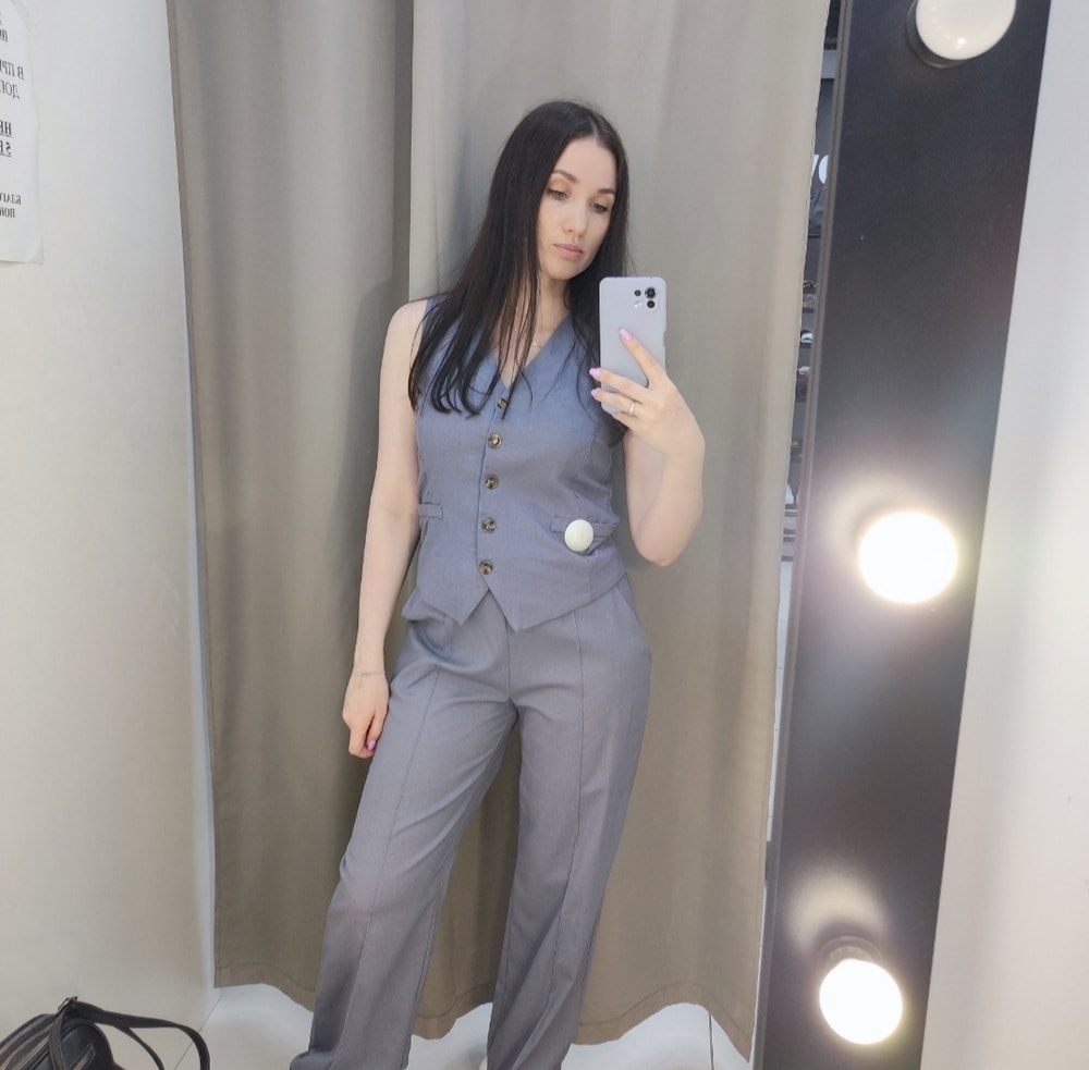 Серый цвет вам очень подходит! Голосую за костюм или платье)