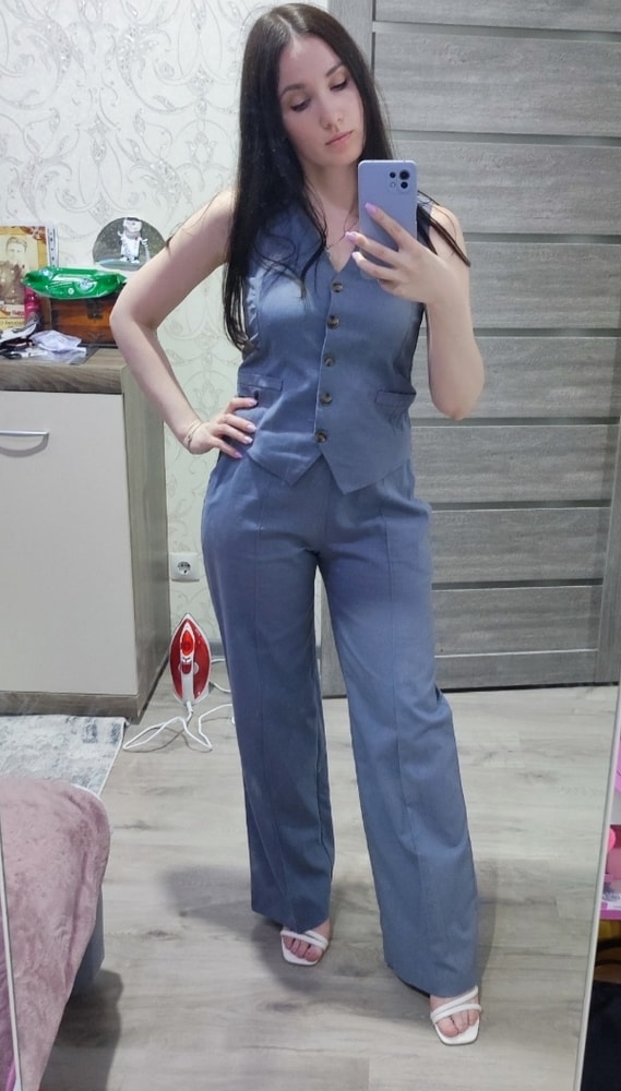 Из представленных вариантов я бы выбрала платье. Костюм с жилетом больше для офиса, образ с топом слишком казуальный что ли. Платье самое уместное