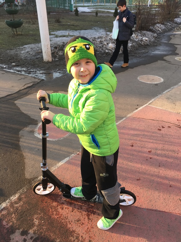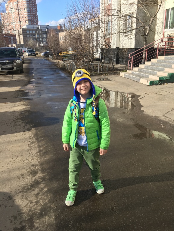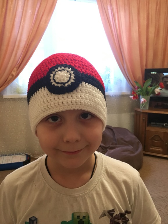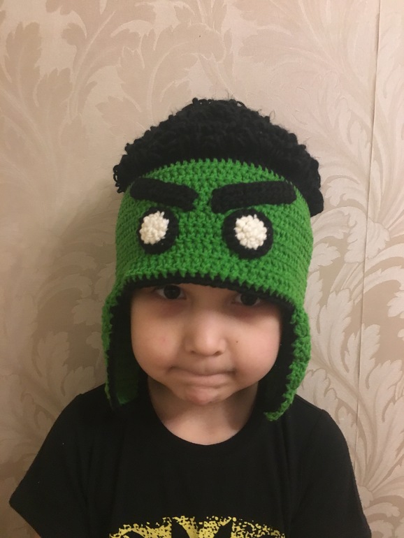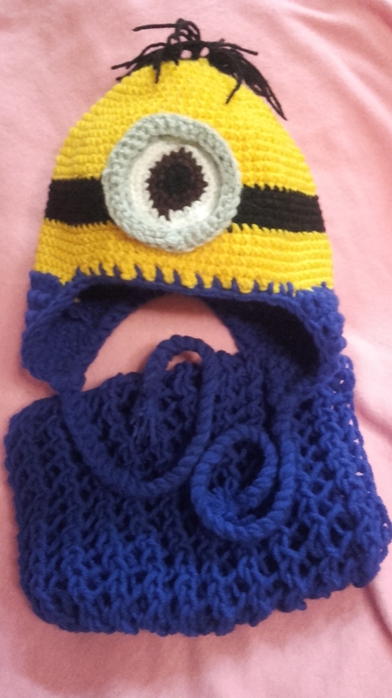Запросил сын шапку-миньона. Но фотаться в ней отказался. Пришлось дочке позировать.
