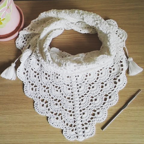 Мои первые две шали, связаны из 100% высокообъемного акрила, размер белой 135×55, размер розовой 150×75, связала их быстро, каждую чуть меньше чем за неделю)