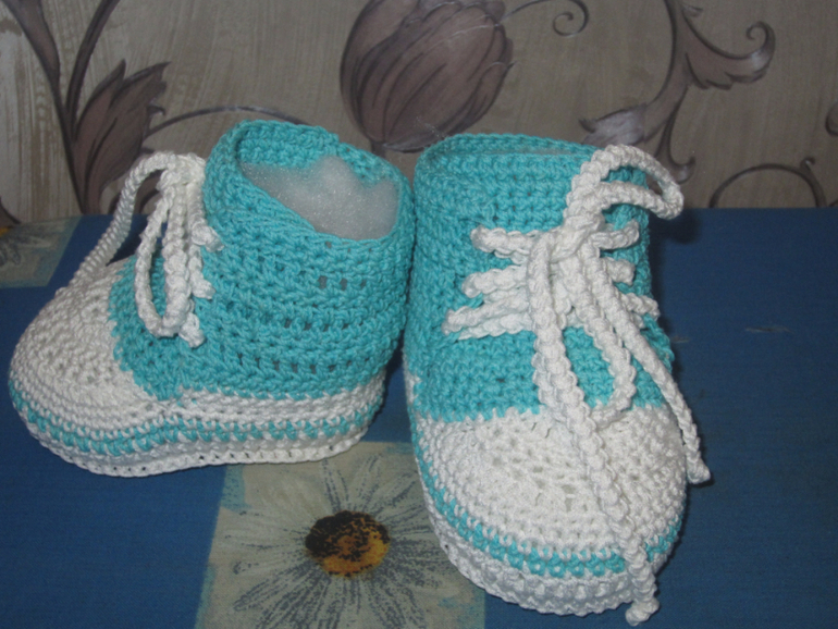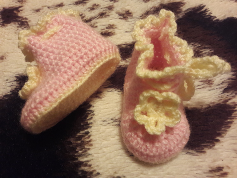 Связала пинетки для недоношенных девочек. Пряжа Бамбино (шерсть/акрил).