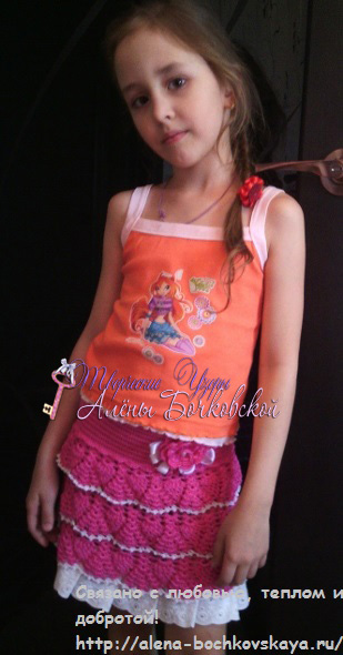 Подруженька мне прислала пряжу, и в начале лета родилась вот такая юбочка для дочи. Вязала в он лайне, только там показывала. Теперь вот с вами делюсь))) Красивый оттенок розового! Узор один из моих любимых - ананасы.