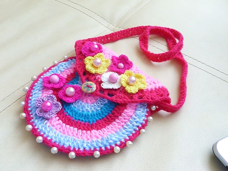 Сумочки для маленьких модниц связаны из пряжи "детская новинка", застегиваются на магнитную пуговку.