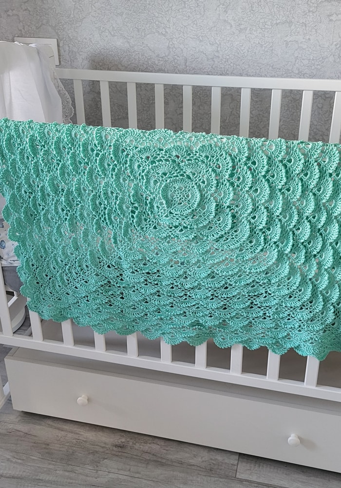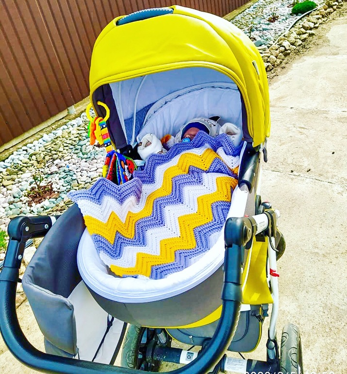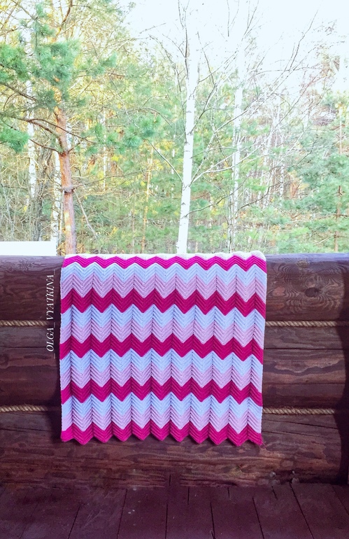 Вот такой плед вязала на выписку. Сейчас укрываю в коляске при ветре.