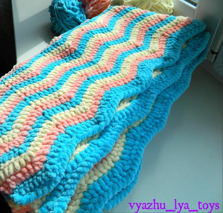Здравствуйте) в вязании крючком не очень сильна пока что ,но уж очень нравится )хочу связать ребенку тёплый пледик ...подскажите какую пряжу лучше выбрать,чтоб тёплый и легкий плед получился ?