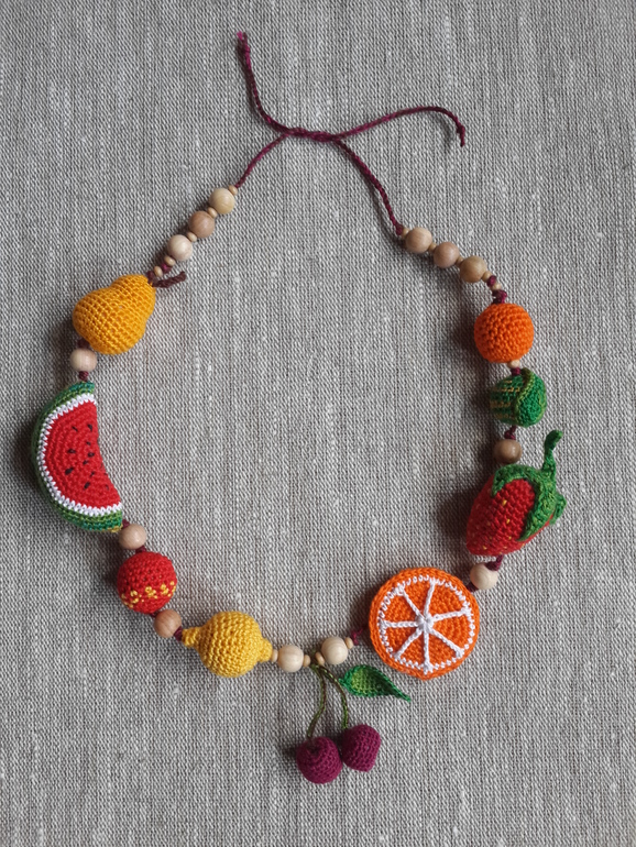 На первом фото слиногобусы делала по просьбе и пожеланиям одной мамы! Помимо всех положительных функций которые перечислю ниже... такие бусы помогут маме уже для взросленького ребенка в игре и знакомстве с фруктами..