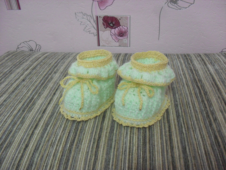Вот такие пинетки у меня получились на ножку 10 см