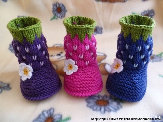 Кто вязал такие пинеточки...объясните ...они вяжутся на двух спицах а потом сшиваются сзади??? Или же вяжеться подошва..а далее по кругу сама пинетка..с низу вверх??
