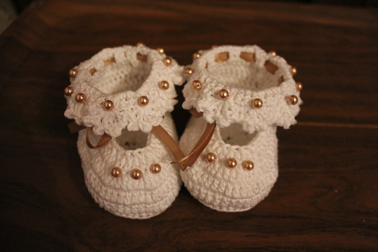 Недавно узнали что у нас будет девчуля!!! В ожидании крошки решила связать пинетки, вот что получилось))