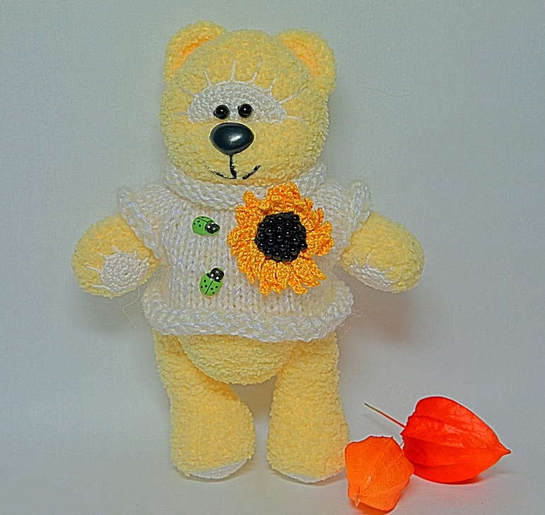 Давно я тут не появлялась… Очередной медвемесяц Сентябрь готов. Получился очень нежным, мягким и уютным). Солнечно-подсолнечный, осенний мишка.