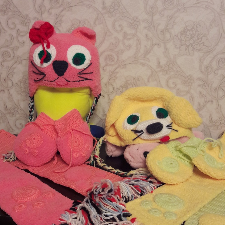 Связались у меня вот такие наборы для моих сыночка и доченьки. Схемы нет, сама нафантазировала.