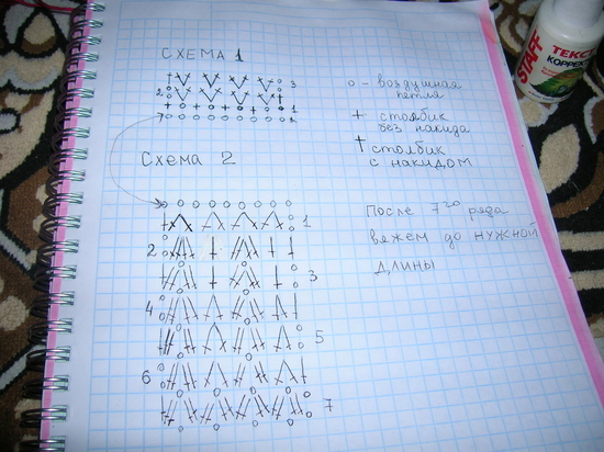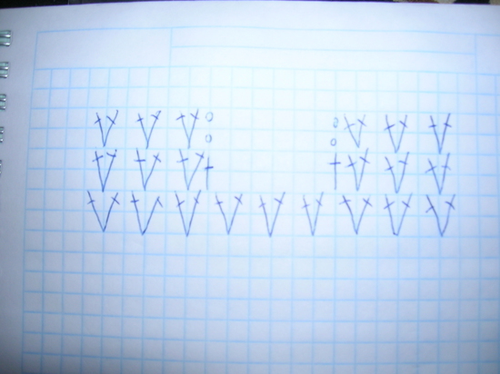 Берем вязание зат место где у нас талия и вяжем вниз по схеме 2 до нужной длины.