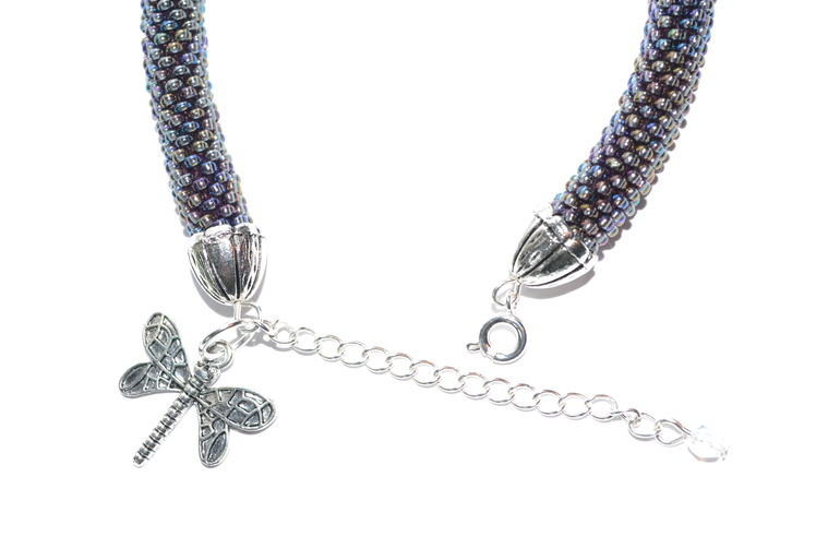 Все просто. Никакой тайны нет. Берем кусочек проволоки желаемого цвета, круглогубцами делаем петельку, но ее пока не закрываем. На эту полупетельку прикрепляем конец бисерного жгута, стараясь не порвать нить, закрываем петельку. Клеем закрепляем эту часть нашего изделия и сразу одеваем концевик. Оставляем просохнуть. Потом - оставшаяся фурнитура: замочек, цепочка-удлинитель или подвесочки, т. е. все, что душе угодно. Вот фото: