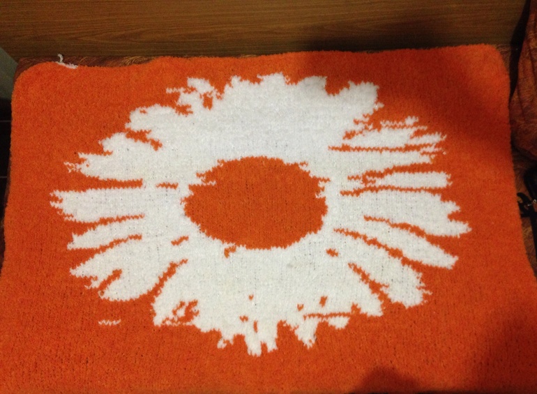 Спасибо.В просторах интернета нашла схему для вышивания,в ней несколько цветов,но я распечатала схему и выписывала каждый ряд сколько петель какого цвета))))округляла что б частой смены нити не было