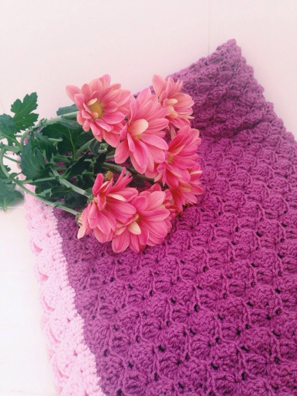 Сиреневый плед попробовала связать из итальянской мериносовой шерсти - на осень и весну самое оно, мягкий и теплый