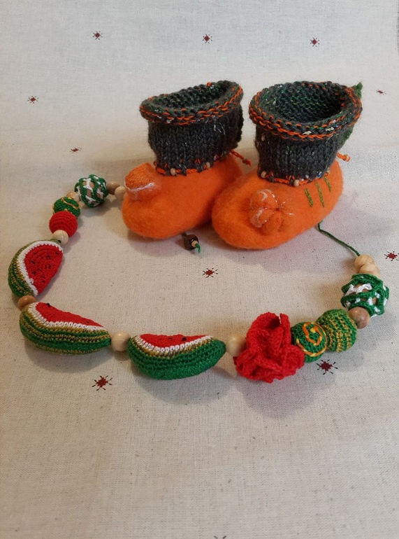 На первом фото слиногобусы делала по просьбе и пожеланиям одной мамы! Помимо всех положительных функций которые перечислю ниже... такие бусы помогут маме уже для взросленького ребенка в игре и знакомстве с фруктами..