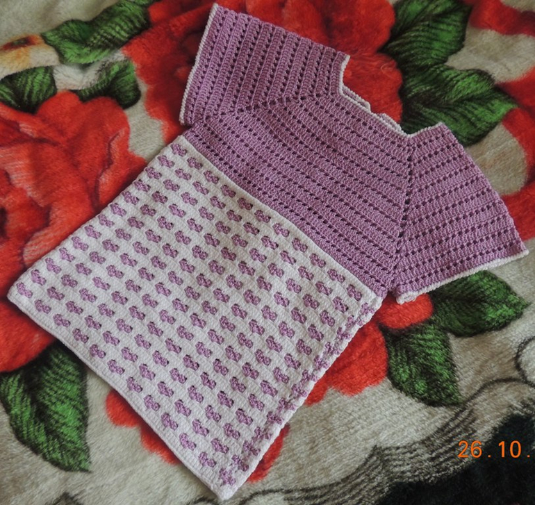 классно! а как называется? а то я давно хочу вот футболочку связать малой но все они мне такими плотными кажутся или наоборот через чур ажурными а тут в самый раз
