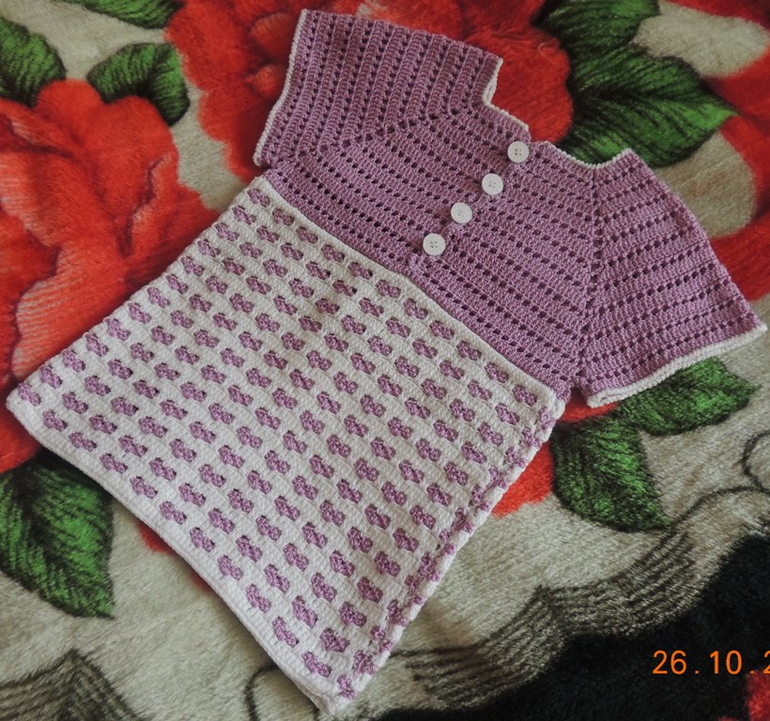 Топики, маечки, футболочки (ДЕТСКОЕ)После долгого перерыва (2 года) решила связать доченьке в садик кофточку. Идею взяла из Страны Мам. Розовая пряжа - вискоза, белая - хлопок. Фирмы не опознаны