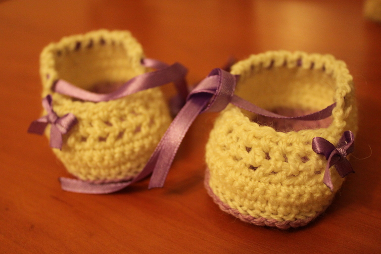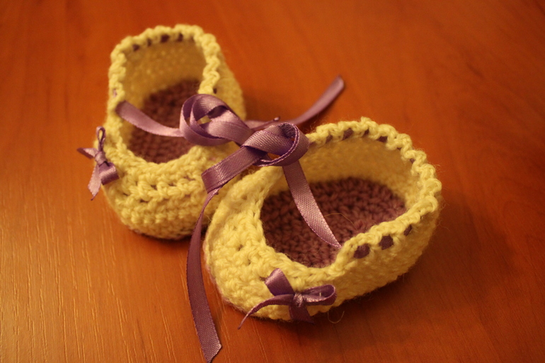 Вязаная обувь (ДЕТСКОЕ)Связались очередные пинеточки-туфельки, потратила пару часиков:) Думала потратить остатки пряжи, не получилось, еще осталось:)))