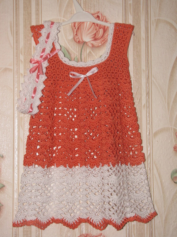 Платья и туникиРазмер 80-86-92, тоже акрил турецкий. К сарафану повязка на головку.