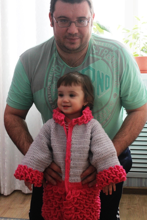 Вязала в технике "крокодиловая кожа". Сейчас подбираем подходящие красивые пуговки под наш комплект.