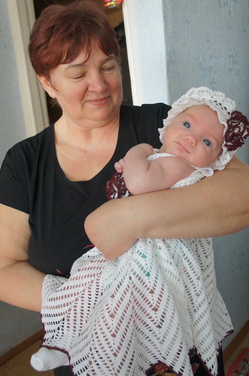 Вот такое платье вязала в течении месяца вечерами, когда укладывала малышку спать, не напрягаясь не торопясь по нескольку рядочков за вечер)