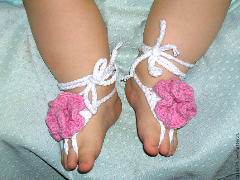 наверное удобнее будет посмотреть в ютубе "цветок крючком",там их множество.а веровочки на теле младенца не отпечатаются?