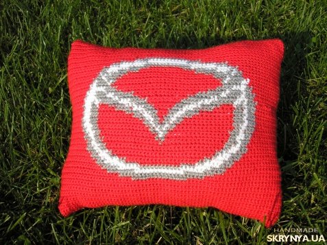 ИЩУ СХЕМУЕсли с самой конструкцией подушки ещё есть надежда разобраться, то со схемой жаккарда без помощи не справлюсь. Ни у кого нет простой схемы эмблемы Мазда для вышивки или жаккарда из одного-двух-трех цветов?