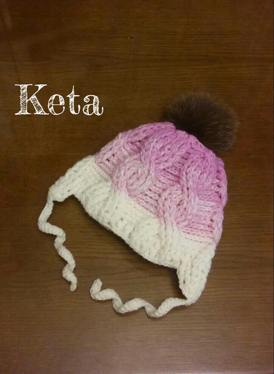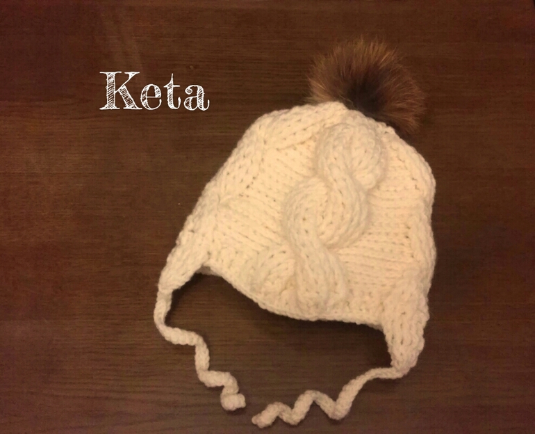 Шапочку вязала для девочки 7 лет, поэтому без завязочек. Помпон натуральный и с голубым отливом как и пряжа. Очень красивый комплект получился, вязала дополнительно шарф снуд.