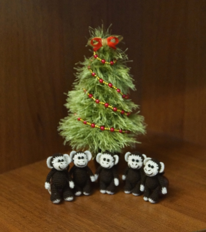 4. Мартышки-малышки около новогодней ёлки. Мартышка - 250 р. Ёлка (высота 20 см, вместе с подставкой) - 350 р.