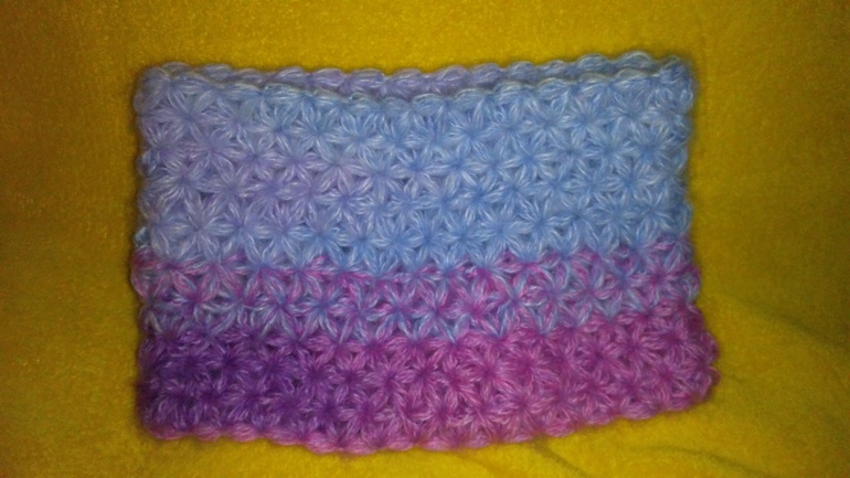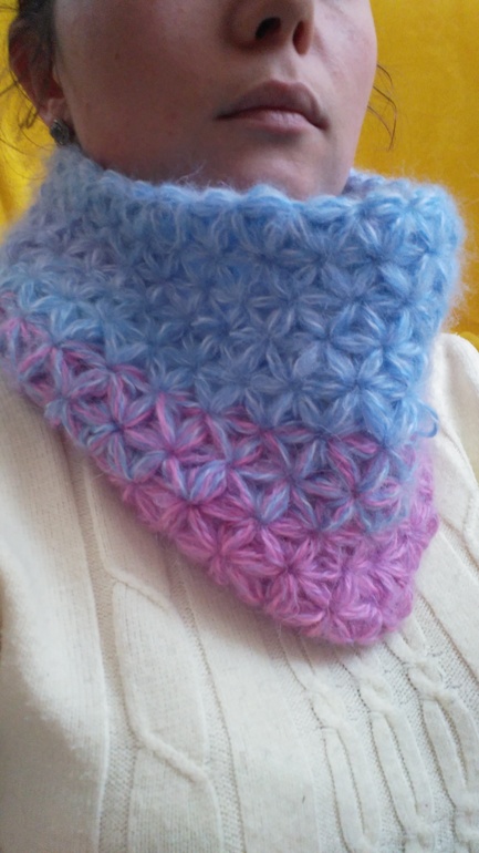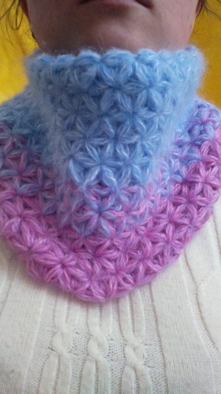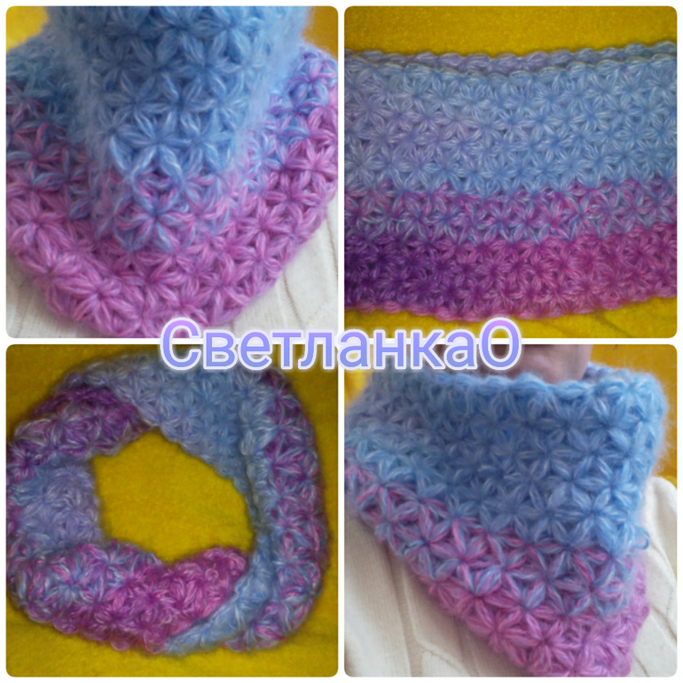 спасибо! просто я вязала в 2 нити разного цвета (правда спицами) ну как-то совсем по-другому смотрелось..