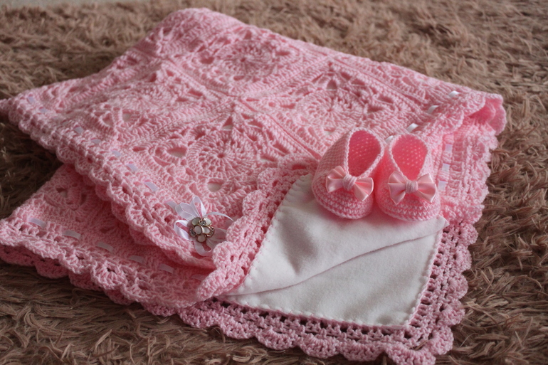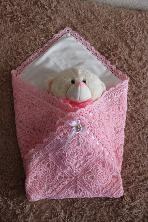 А я ажурный плед для своей дочи вязала. Правда о подкладе не догадалась. Да и жара была в 40 градусов, когда она родилась.