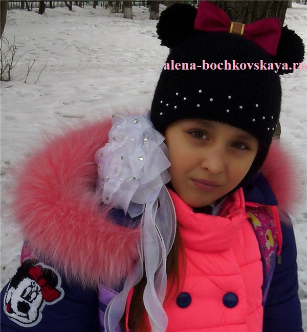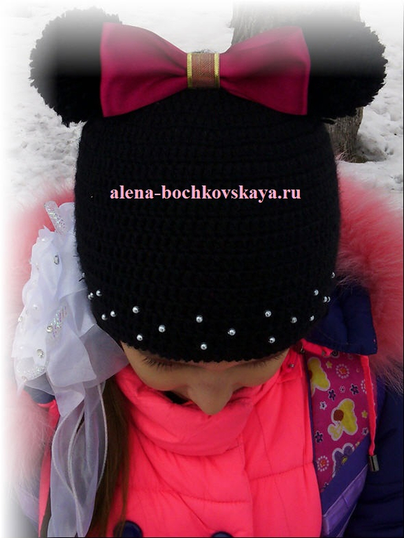 Шапочка для девочки вязаная крючком Минни — Маус.