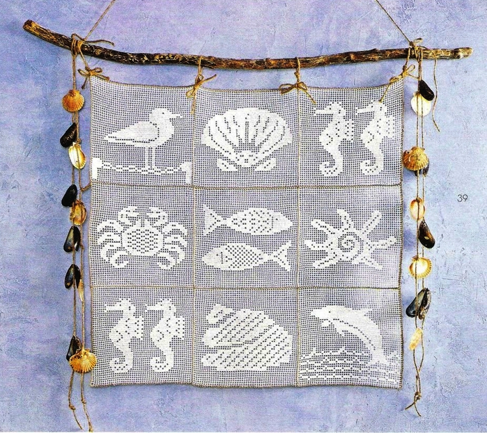 Я не вязала, но тут, видимо, вяжется отдельными фрагментами, потом сшивается. Филейное вязание. Пустые квадратики из воздушных петель и столбиков С/Н, заполненные из 4-х столбиков С/Н. По-крайней мере, я раньше так вязала такие картины наподобие.