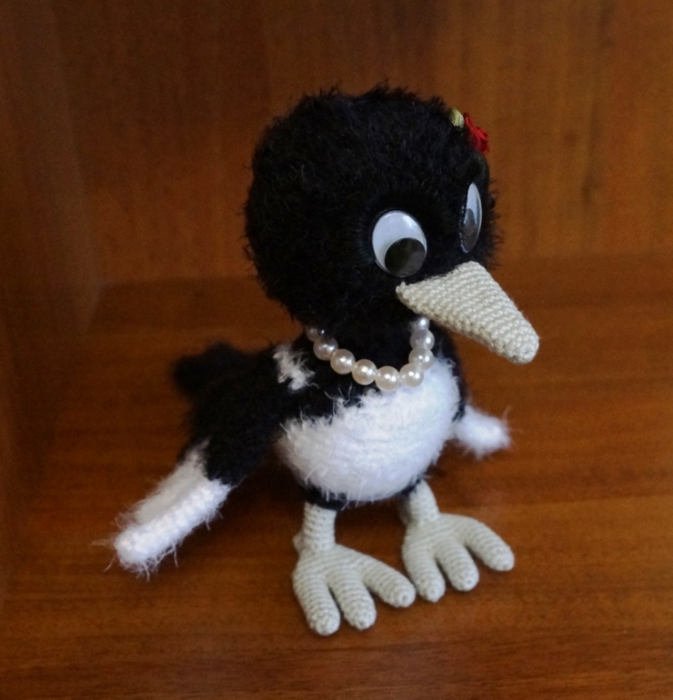 НАШИ ХВАСТУШКИВчера закончила вязать вот такую очаровательную сороку-белобоку. Вязалась для детского сада. МК покупала на ярмарке мастеров у Алины Беликовой. Пряжа: хлопок-травка от Камтекс. Вот что получилось: