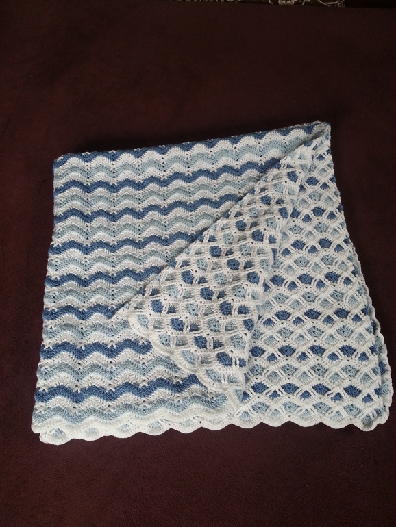 Пледы, одеяла, покрывала (ДЕТСКОЕ)Размер 84×80. Ушло 13 моточков ниток YarnArt бегония (100% хлопок, 50гр - 169 м). По 3 синих и голубых и 7 белых. И целый месяц работы))))