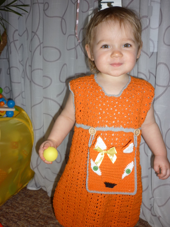 НАШИ ХВАСТУШКИЗдравствуйте, рукодельницы! решила показать еще весеннюю работу - платье для дочки (можно и сарафан). Кармашек-сумочка съемный, можно носить и без него. Ниточка акрил+хлопок