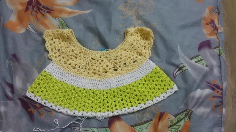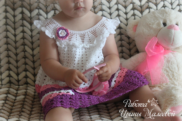 Платья, сарафаны (ДЕТСКОЕ)Связалось такое вот платьице для дочки, изначально хотела повторить работу Елены Савиной, но передумала как только связала кокетку:) Получилось нечто своё!