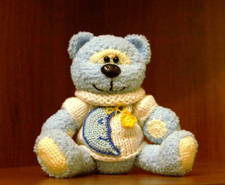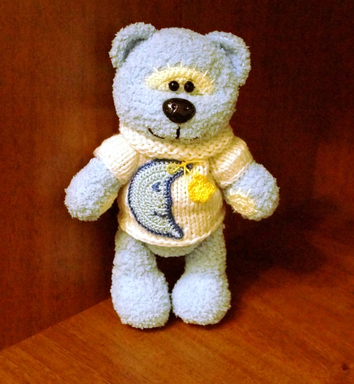 Первый медвежонок из серии "Мишки настроения". Это у нас получился Мишка сна. Очень мягкий и нежный. Весь такой тискальный :). Высота 18 см. Вполне возможен вариант высотой 23 см